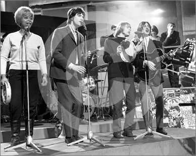 Doris Troy with Ray Davies, Keith Relf and Dave Davies.