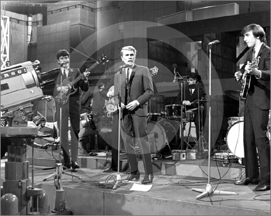 Adam Faith and his backing band on stage at ‘Ready Steady Go’ performing live.