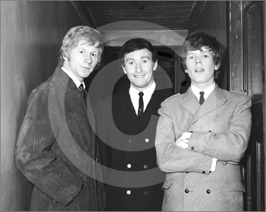 Andrew Oldham who handled The Beatles PR in 1963, went on to co-manage The Rolling Stones and formed the ‘Immediate’ Record Label, seen in this photograph with Brian Poole and Peter Noone from Herman’s Hermits.