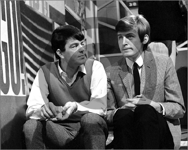 Seen here at ‘Ready Steady Go’, Patrick Kerr, compere and dancer along with Mike McGear of ‘The Scaffold’ better know as Mike McCartney, Paul’s brother.